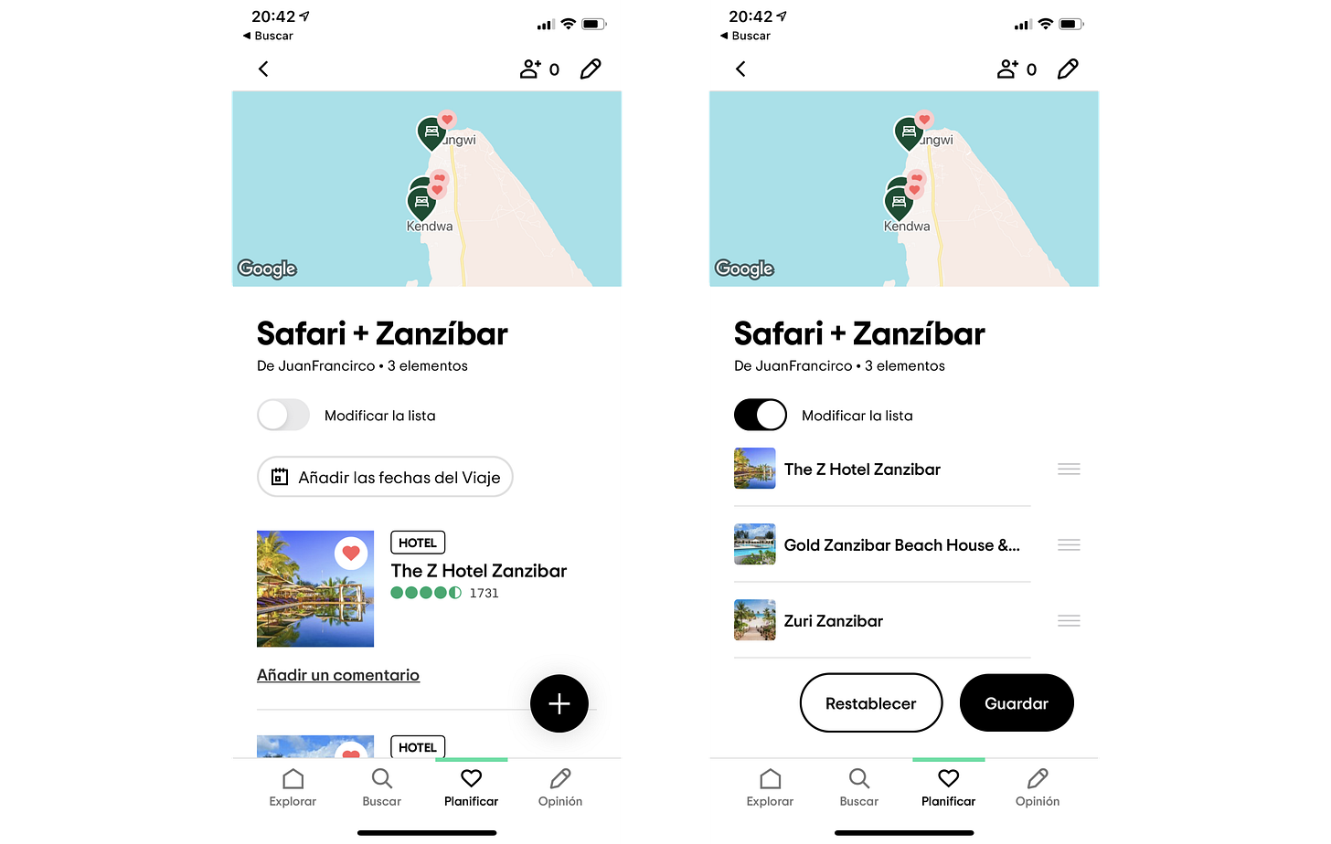 El caso es que creando una lista para un viaje me di cuenta de un detalle que me llamó la atención. Nunca había visto una app que utilizara un switch para activar la modificación de una lista. ¿No es más fácil dejar ese Modificar la lista como un enlace y solucionado? Un switch tiene dos estados, sirve para activar o desactivar algo inmediatamente, no para editar y/o ordenar una lista.